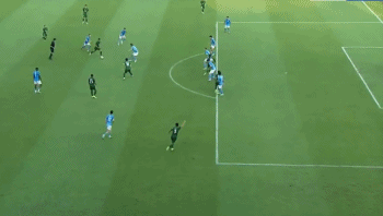 比賽的第13分鐘,季家寶后場(chǎng)長(zhǎng)傳,韋斯利頭球擺渡,加西亞突入禁區(qū)晃過(guò)出擊的侯森之后斜射破門,1比0!